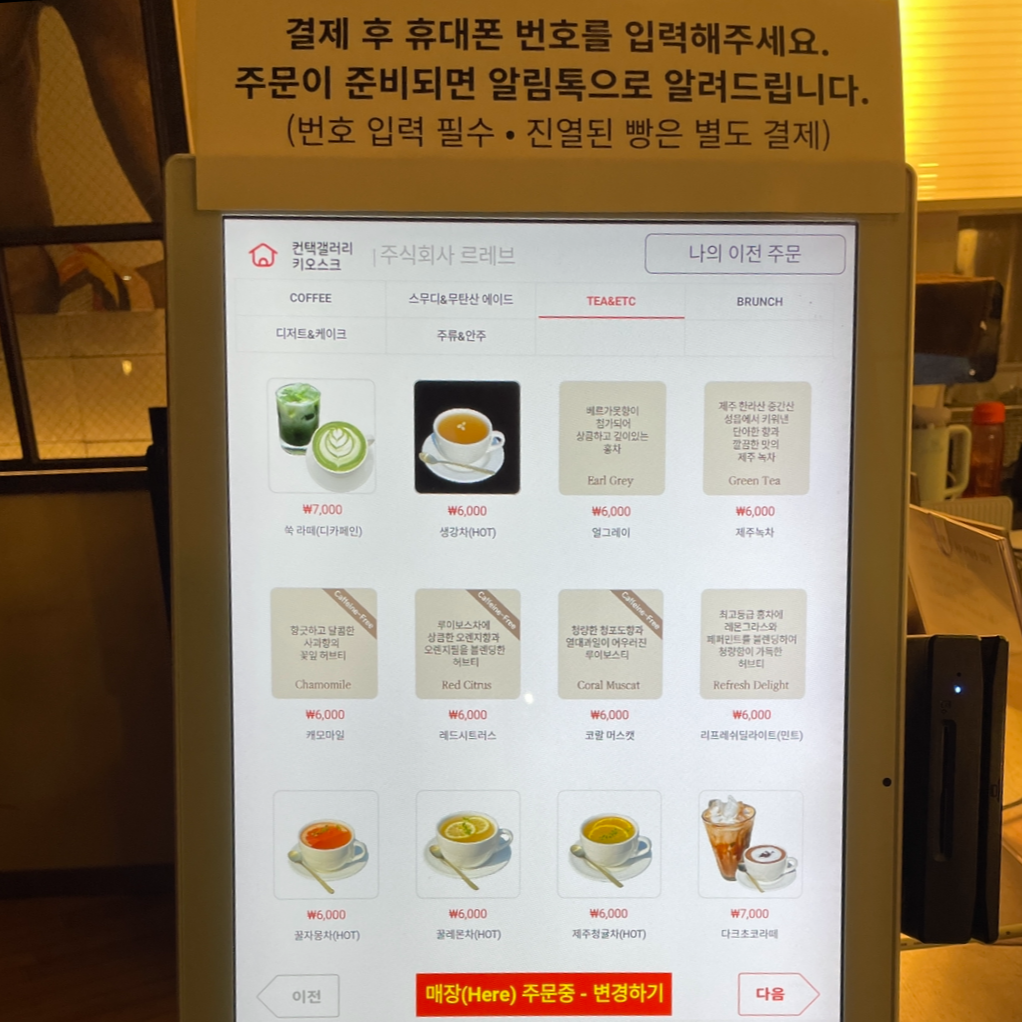 차를 주문받는 직원들도 친절합니다.