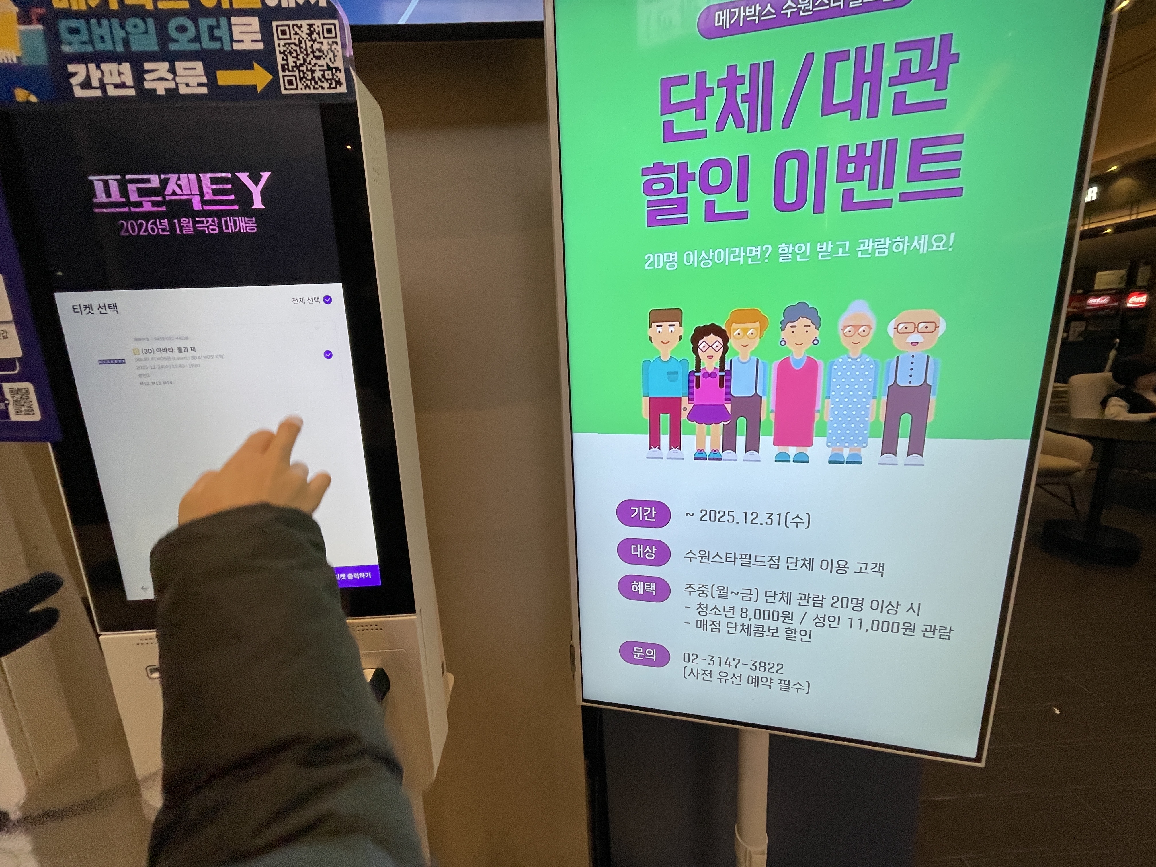 메가박스 수원 스타필드점에서는 단체 대관 할인 이벤트를 하고 있습니다.
