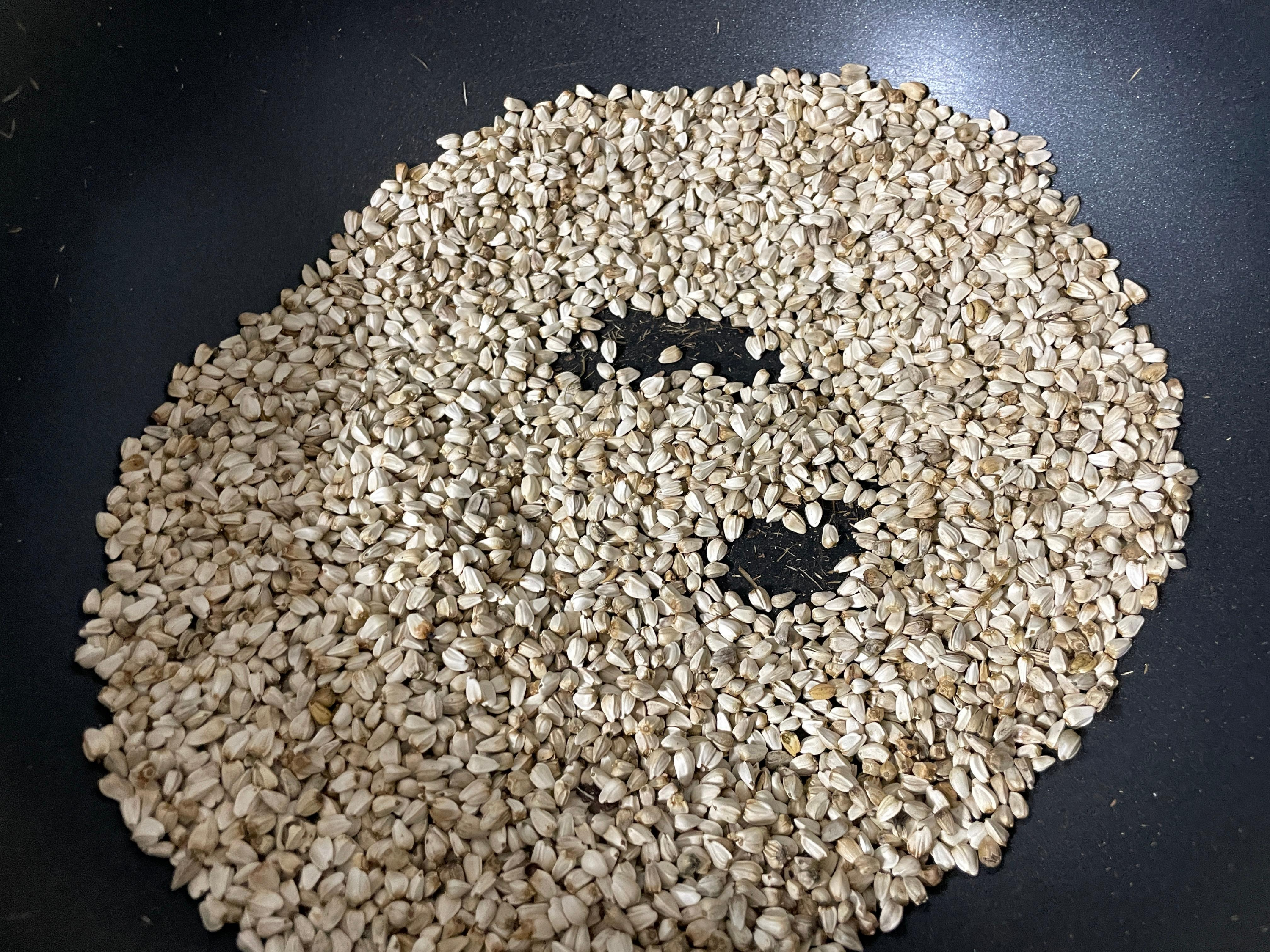 1. 프라이팬을 약불로 달군 뒤, 기름 없이 홍화씨를 넣고