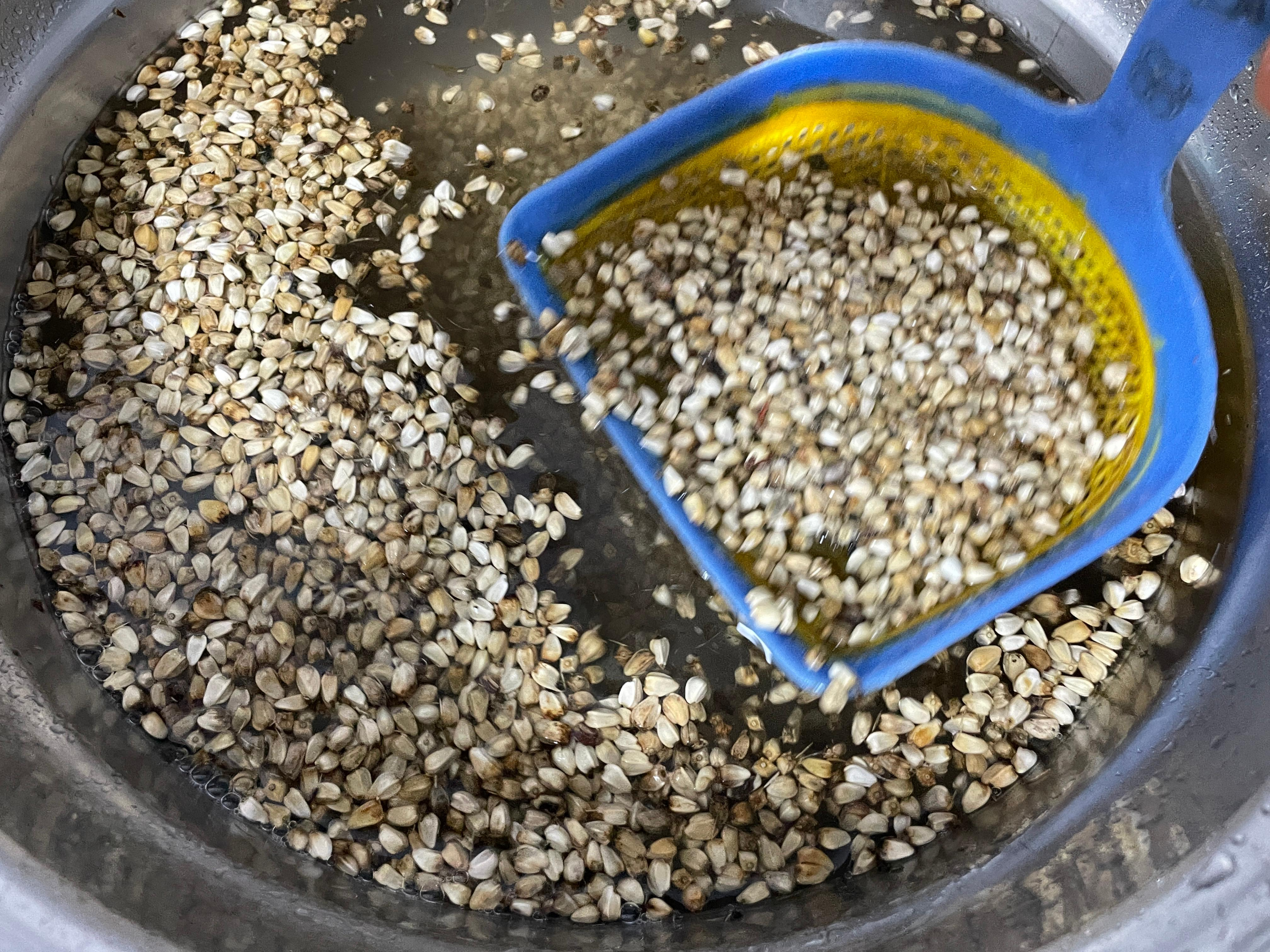 1. 냄비에 물과 홍화씨를 넣고 끓이다가 물이